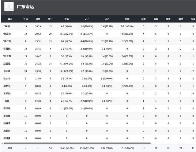 从数据来看,广东宏远青年队确实厉害,全队73投37中,命中率50.7%。而广州队81投35中,命中率43.2%,差点意思。而在护筐层面,广东宏远青年队抢到42个篮板球,广州队仅31个。