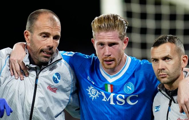 第33分钟,迪洛伦佐被放倒,裁判判罚点球。德布劳内主罚,他稳稳把球罚进,帮助那不勒斯取得领先。而德布劳内因此拉伤了,不得不被换下场,有些倒霉。第40分钟,巴斯托尼差一点进球,他的头球攻门击中了横梁弹出。半场补时阶段,邓弗里斯头球攻门,皮球击中立柱弹出底线。半场结束,那不勒斯1-0领先国际米兰。